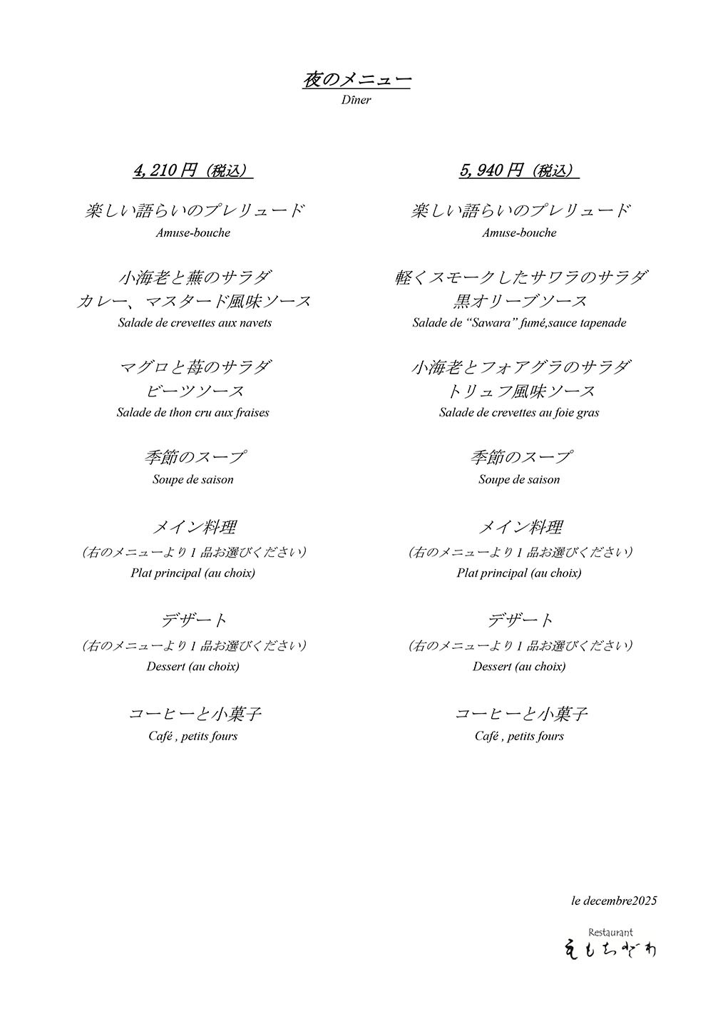 12月メニュー