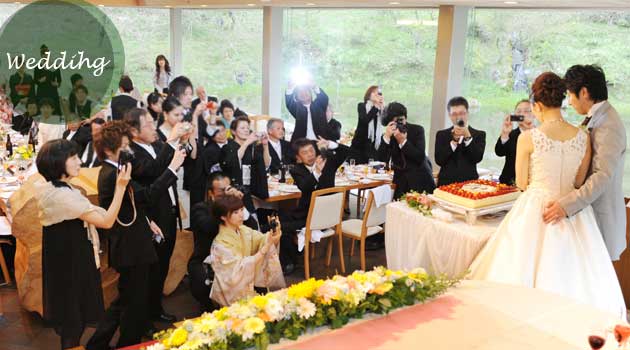 水上に浮かぶ全面ガラス張りの室内からは、池辺の山紅葉や花々や竹林が見えます。それらは、芽吹き、深緑、紅葉、季節により移り変わり、一日のうちでも昼と夜ではその姿が異なります。一時として同じものがない景色を眺めながら、フランス料理を楽しんでいただくことができます。